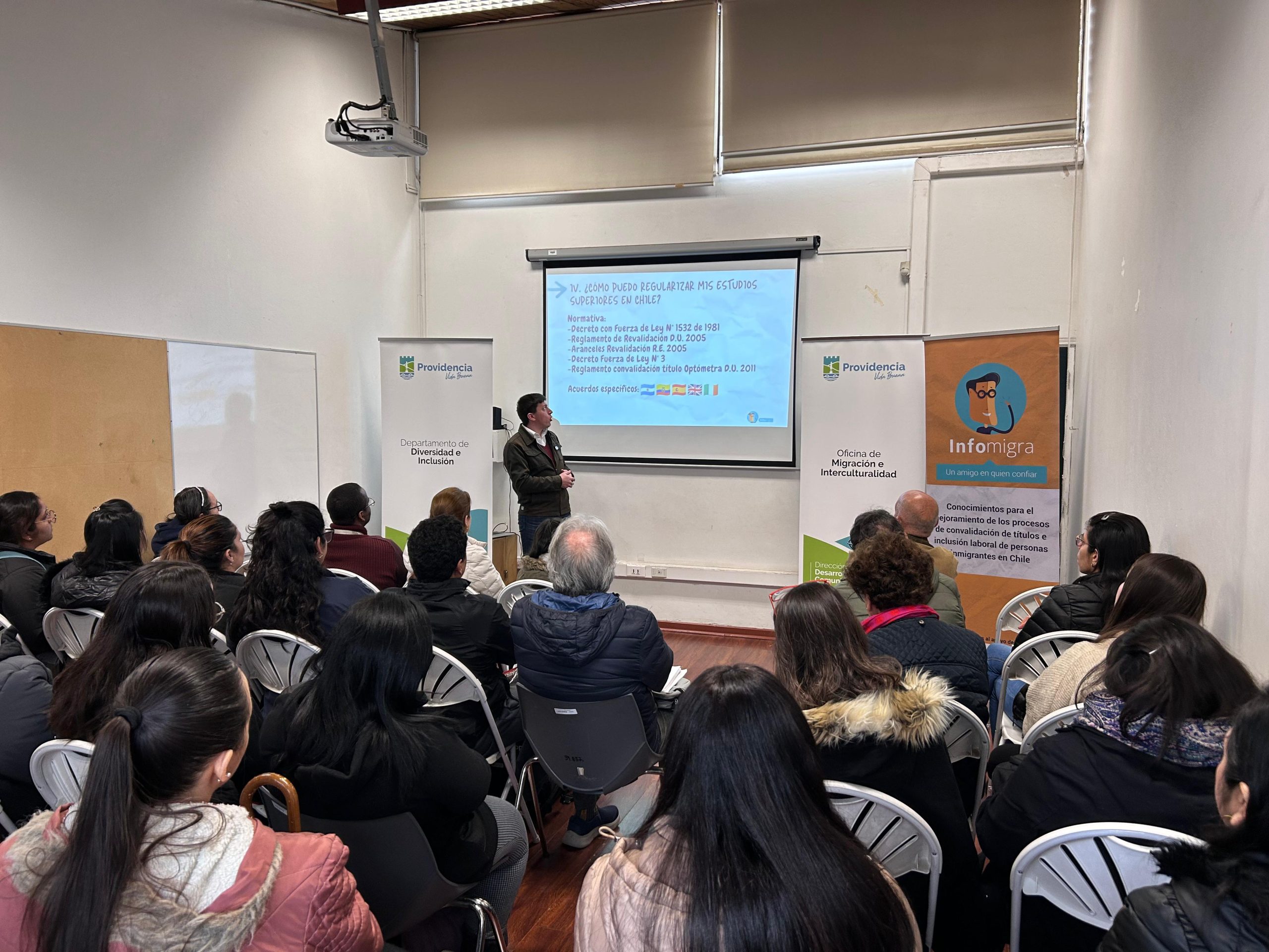 El proyecto “Conocimientos para el mejoramiento de los procesos de convalidación de títulos e inclusión laboral de personas inmigrantes” tuvo como objetivo capacitar a empleadores/as y trabajadores/as inmigrantes sobre el nuevo reglamento de convalidación de títulos profesionales a base de la nueva ley de migraciones para facilitar la inserción de profesionales y técnicos al campo laboral chileno a través de 8 sesiones presenciales.