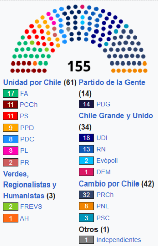 Las cámaras de diputados/as y senadores/as ha quedado compuesto de la siguiente manera: